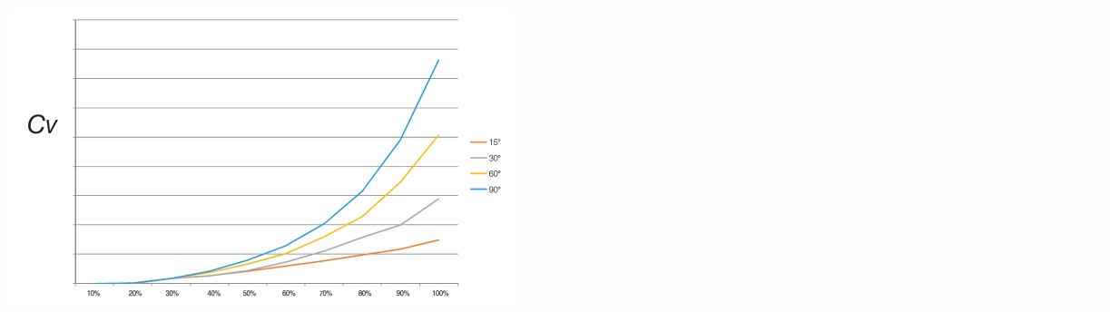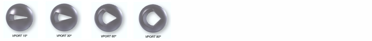 Zawory regulacyjne z kulą 'V''–port Pekos dostępne są z kryzami: 15°, 30°, 60°, 90°.